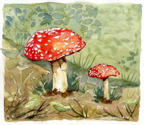 Moje ulubione muchomory!! Tyle ich było w tym roku w moim lesie,ze tez malowałam, ale nie umiałam tak ładnie )